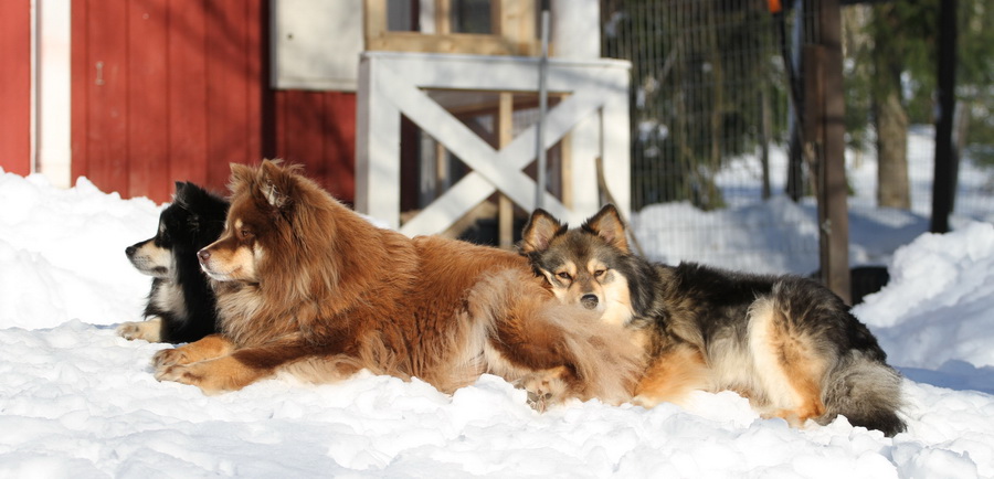 Koirat ovat meille perheenjäseniä ja ne asuvat kanssamme talossa sisällä. Ne saavat ulkoilla vapaasti aidatulla piha-alueella ja niiden kanssa käydään päivittäin myös hihnalenkillä.